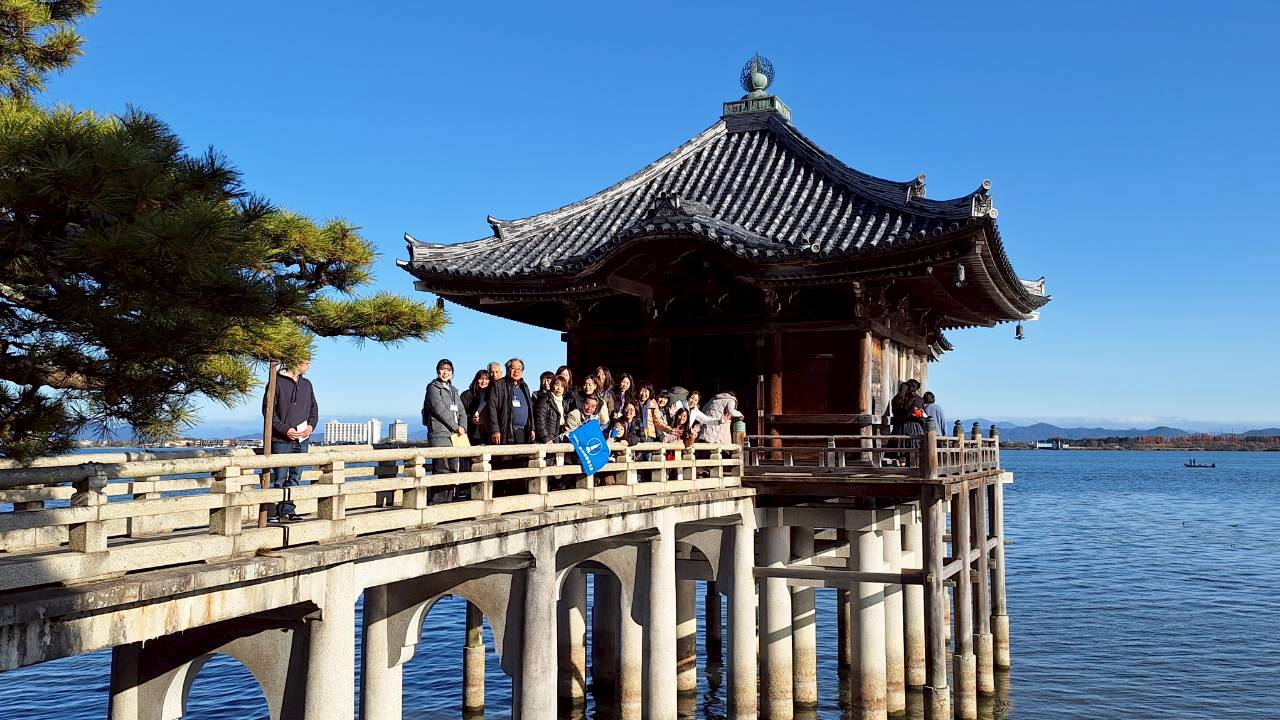 会議に先立ってまずは本堅田のまち歩きへ。案内は堅田観光協会会長で滋賀県建築士会員の八軒氏。最初にヴォーリズ建築の魅力を伝える堅田教会へ立ち寄り礼拝堂にて東牧師に教会の特徴をお話いただきました。その後、湖族の郷資料館へ。平安、戦国、江戸の世を、湖上の物流や軍事上の勢力者として繁栄し続けた堅田湖族の歴史を、八軒氏のユニークな語り口で解説いただきました。続いて近江八景「堅田の落雁」で名高い浮御堂を拝観、湖畔の道を歩き、最後に居初家・天然図画亭を訪れ、縁側に座り手入れの行き届いた庭を眺めて心が和むひと時を過ごしました。城山三郎や三島由紀夫など多くの作家の作品の舞台となった堅田の町。歴史と風情ある町並みを十分に味わうことのできたまち歩きでした。まち歩きのあとは、福谷会長、湖西滋賀地区松井代表にご臨席頂き全員会議を行いました。スライドを使った事業報告と次年度に向けての活動目標を述べ、参加者の方々から意見を頂戴しました。次年度、新たな体制での委員会に向けて引き続き皆様のご協力をお願いいたします。